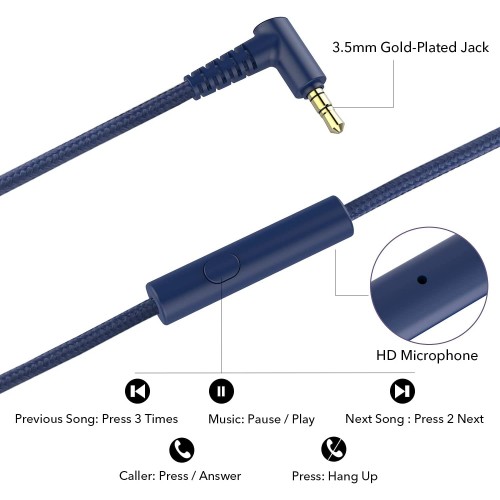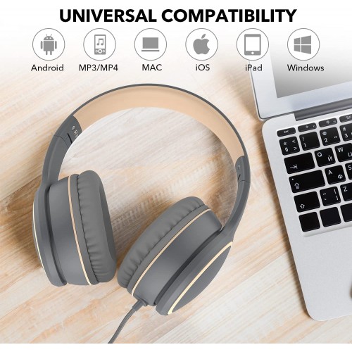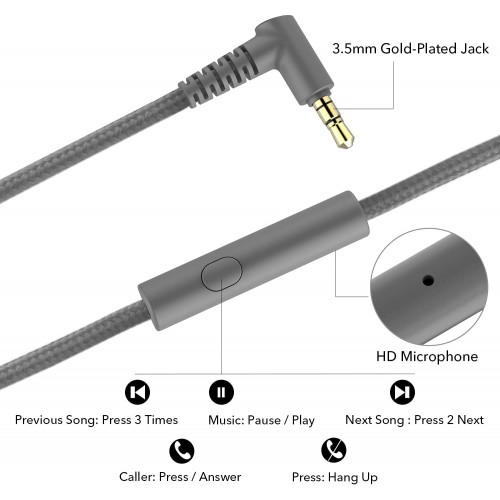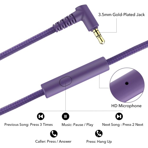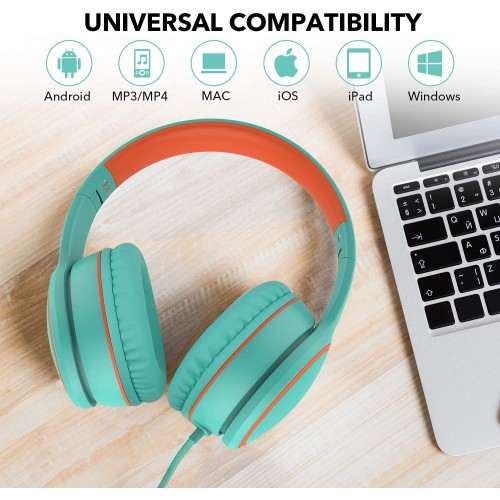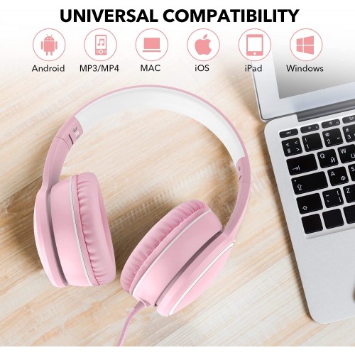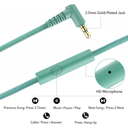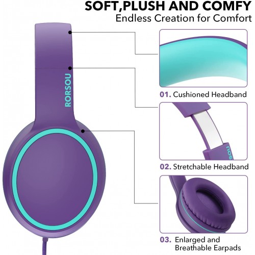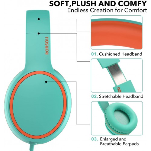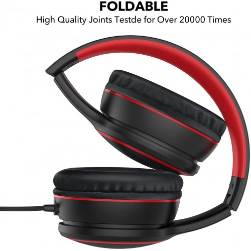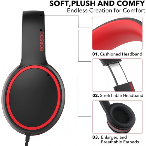 RORSOU R10 On-Ear Headphones with Microphone, Lightweight Folding Stereo Bass Headphones with 1.5M No-Tangle Cord, Portable Wired Headphones for Smartphone Tablet Computer MP3 / 4 (Black)