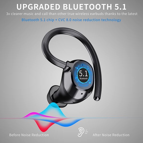 Wireless Earbud, Sport Bluetooth 5.1 Headphones Wireless Earphones in Ear Noise Cancelling Bluetooth Earbud with Mic, IP7 Waterproof 48H Deep Bass Sports Earhooks Headset for Running Gym[2021 New]